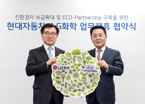 [쿠키뉴스=이훈 기자] 현대자동차㈜는 LG화학과 친환경차 보급확대 및 ‘에코-파트너십(ECO-Partnership)’ 구축을 위한 업무제휴 협약을 체결했다.