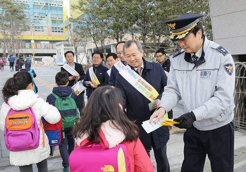 한국지역난방공사는 4일 경기 광교신도시 내에 위치한 신풍초등학교 주변에서 ‘3월 대국민안전 캠페인’을 진행, 전단지을 나눠주고 어린이들에게 학교생활에서 지켜야 할 안전수칙을 알렸다.