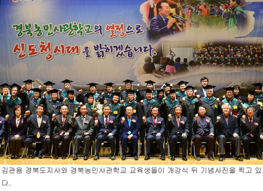 도는 이날 안동대학교 솔뫼문학관에서 김관용 도지사와 장대진 도의회 의장, 정창진 안동부시장을 비롯해 권태환 안동대 총장, 손재근 FTA특별대책위원장, 입학생 및 지도교수 등 1000여명이 참석한 가운데 ‘2016년 경북농민사관학교 합동개강식’을 가졌다.