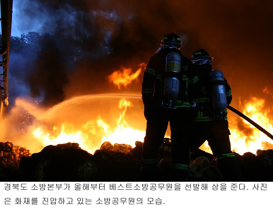[쿠키뉴스 안동=김희정 기자] 경상북도 소방본부는 올해부터 도내 소방공무원 3000여명 가운데 약 5명을 ‘올해의 베스트(BEST) 소방공무원’으로 선발한다.