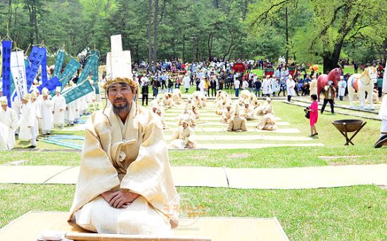 [쿠키뉴스=박효상 기자] 29일 오후 강원 영월군에서 ‘제50회 단종문화제’가 열렸다. 이날 행사에 참가한 박선규 영월군수가 ‘단종 국장’을 재현하고 있다.
