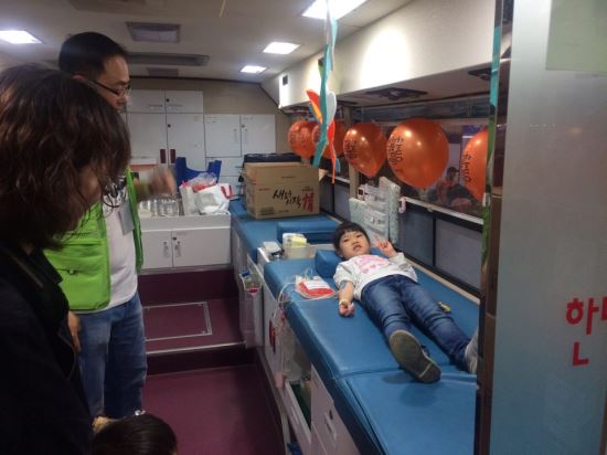5일에 이어 6일에도 한마음혈액원은 아이가 가상으로 헌혈을 직접 체험해보는 프로그램을 진행했다. 헌혈체험을 완료한 아이에게는 초코파이 등 작은 선물도 주어졌다.