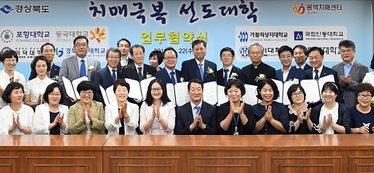 도는 22일 도청 사림실에서 광역치매센터, 치매극복 8개 선도대학교와 ‘경상북도 치매극복 선도대학 업무협약’을 체결하고, 현판을 전달했다.