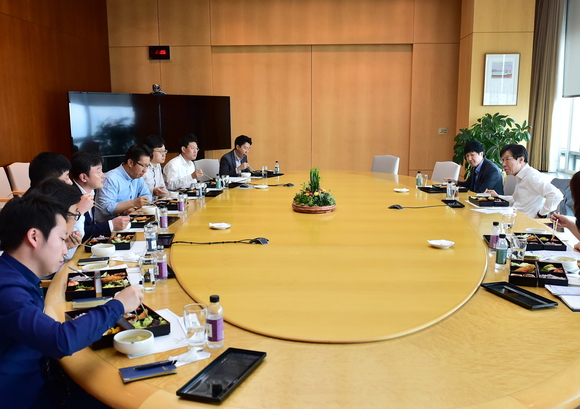 권오준 포스코 회장이 도시락 간담회를 통해 직원들을 격려하고 소통경영을 강화하고 있다.