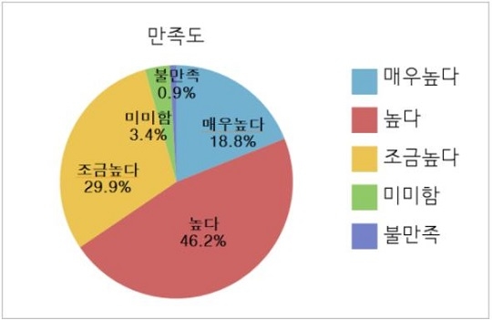 지원 사업에 대한 만족 답변은 94.9%이고, 매출증대는 64.1%로 나타났다.