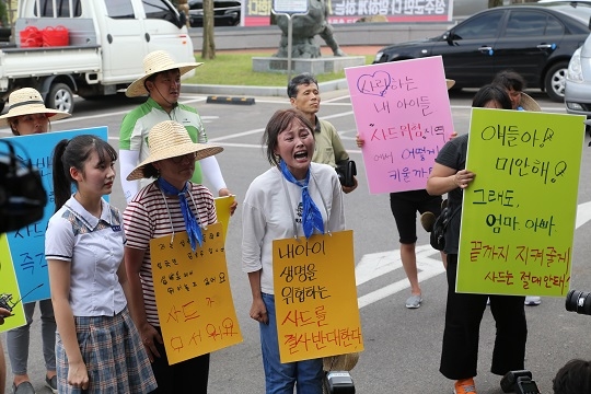14일 오후 4시 성주군청은 자녀들을 걱정하는 어머니들의 절규로 눈물바다가 됐다.