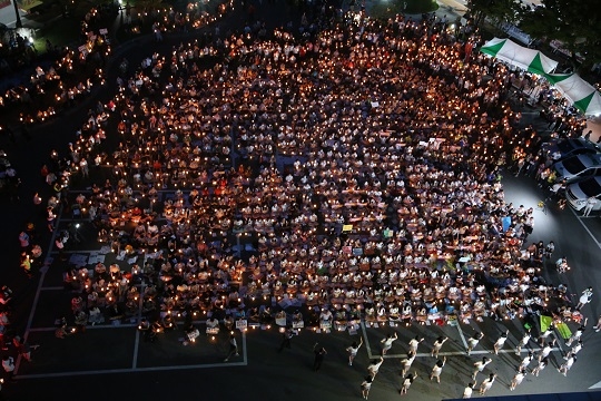 13일 사드 성주배치가 결정되자 14일 밤 성주 주민 1000여명이 성주군청 앞마당에서 촛불집회를 갖고 반대의지를 표출했다.
