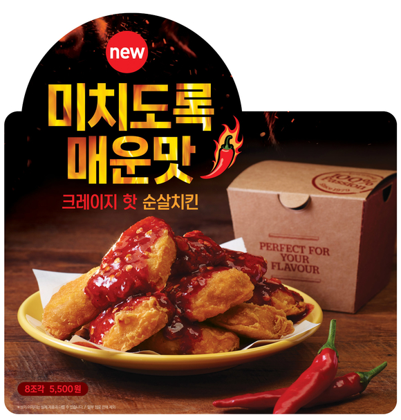 ‘크레이지 핫 순살 치킨’은 매장 방문 고객에 한해 오는 9월 11일까지 5500원에 한정 판매 되며 간편한 취식 및 포장이 용이한 포장 용기를 도입했다.