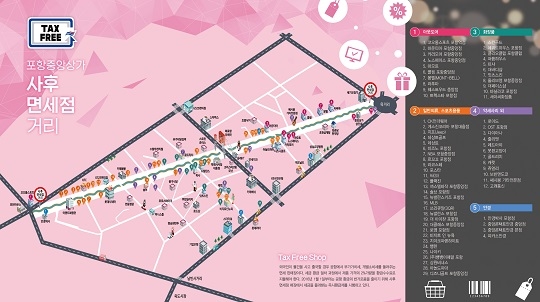 사후면세점은 외국인이 3만원 이상 물건구매 후, 출국 시 부가가치세를 환급받을 수 있는 점포다. 경북도, 포항시, 포항중앙상가상인회는 지난 5월부터 공청회 등을 통해 중앙상가 실개천의 66개 점포를 사후면세점으로 등록했다.