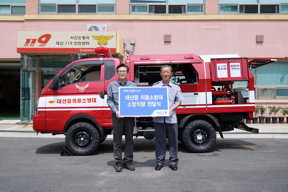 현대오일뱅크는 충남 서산시 대산읍 의용소방대에 산불진화 차량을 기증했다.