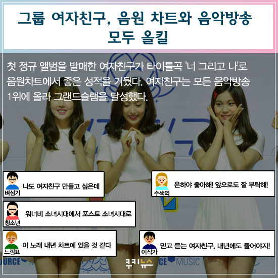 첫 정규 앨범을 발매한 여자친구가 타이틀곡 '너 그리고 나'로 음원차트에서 좋은 성적을 거뒀다. 여자친구는 모든 음악방송 1위에 올라 그랜드슬램을 달성했다.