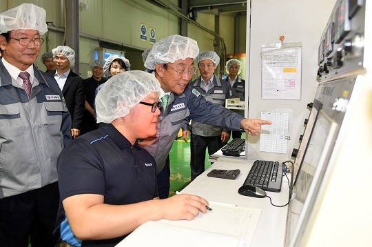 이어 김 지사는 작업복을 입고 공정라인에서 일하는 청년근로자들과 함께 제품 생산 작업을 몸소 체험하면서 근로자의 마음을 이해하는 시간을 가졌다.