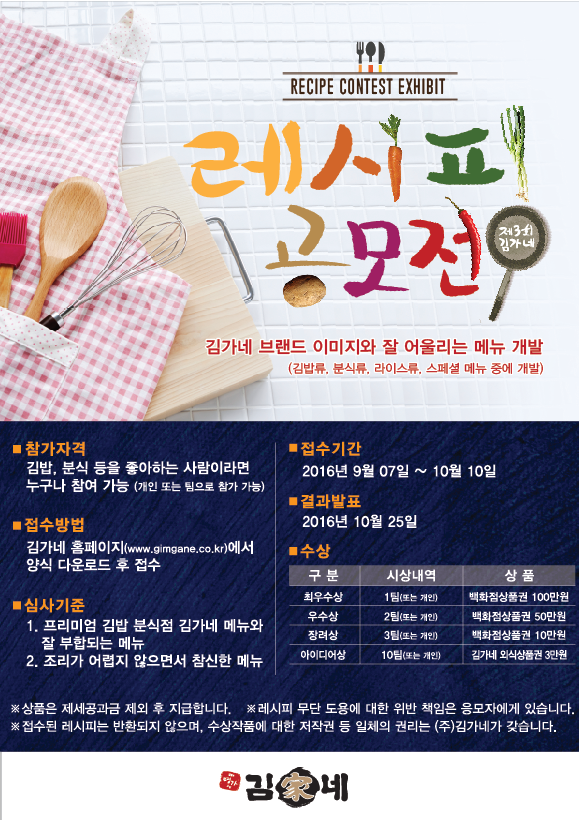 김가네 레시피 공모전은 오는 10월 10일까지 진행된다.