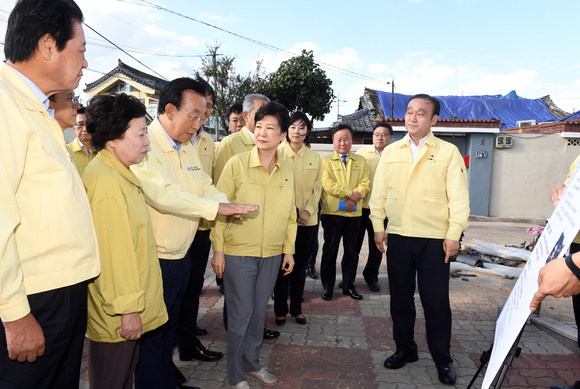 박 대통령은 이날 오후 경주시 황남동 고도 한옥보존육성지구를 찾아 현장을 둘러보고 주민들을 위로했다.