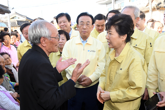 [쿠키뉴스 경주=김희정 기자] 박근혜 대통령이 20일 경북 경주지역의 지진 피해현장을 전격 방문해 현장을 둘러보고 주민들을 격려했다.