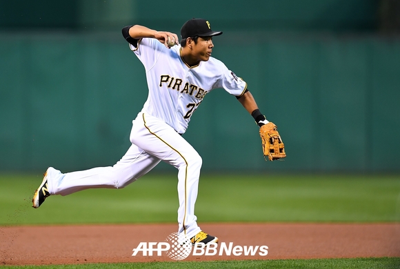 [쿠키뉴스=이훈 기자]강정호가 지난 23일 미국 펜실베이니아주 피츠버그의 PNC 파크에서 계속된 워싱턴 내셔널스와 홈 경기에서 멋진 송구를 보여주고 있다.