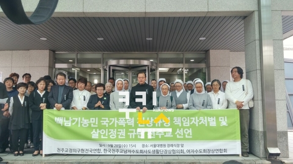 천주교정의구현전국연합 등은 이날 오후 3시 장례식장 앞에서 ‘백남기농민 국가폭력 진상규명 책임자처벌 및 살인정권 규탄 천주교 선언’ 기자회견을 진행했다.