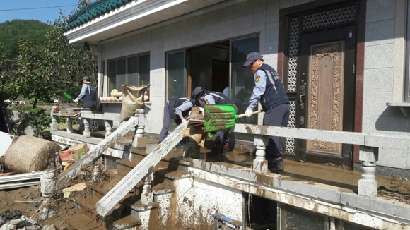 6일 오전 9시에는 경북 안전기동대원 55명이 울주군 언양읍 반천 현대아파트, 여성의용소방대원 100명이 울주군 삼동면 일원 주택 침수지역에 긴급 투입돼 가재도구 세척, 오물 치우기 등 긴급 복구에 손을 보탰다.