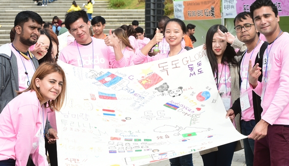 이날 오전 경북대, 이화여대, 한국외국어대, 대전대 등 전국에서 활동하는 50여개 대학교 독도동아리 회원 300여명의 ‘대학 독도동아리 전국네트워크 발대식’을 시작으로, 세계 40여 개국 외국인 유학생들이 참여하는 ‘독도사랑 글로벌 서포터즈 라이징 선포식’을 가졌다.