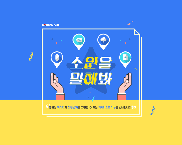 [쿠키뉴스=이훈 기자] 대한항공은 24일부터 여행을 준비하는 고객들이 당사 홈페이지에서 가고 싶은 여행지와 일정 등을 저장할 수 있는 ‘위시리스트’ 기능을 도입했다.
