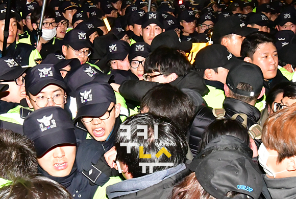 [쿠키뉴스=이승희 기자] 이른바 ‘최순실 게이트’의 진상 규명 및 박근혜 대통령의 하야를 촉구하는 대규모 집회 참가자들이 경찰과 격렬한 몸싸움을 벌였다.