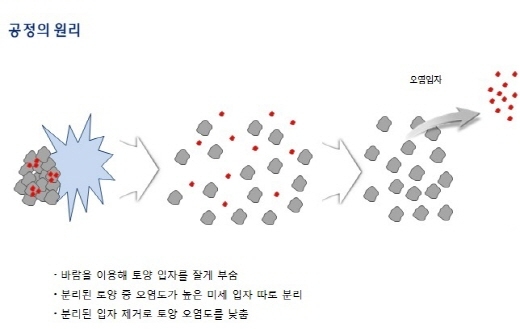 이 환경신기술은 물과 화학약품을 사용하지 않고 바람을 이용해 중금속 오염도가 높은 토양을 분리하는 기술로 공정구성이 간단해 경제성이 높다.