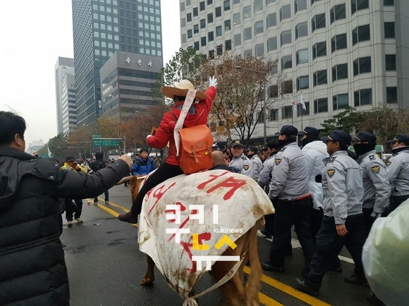 이날 경기도 수원에서 온 한 촛불집회 참가자는 소 두 마리를 몰고 종로1가에서 광화문광장으로 진입하려 했지만, 경찰은 안전상의 이유로 이를 저지했다.
