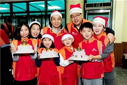 이들 참여자들은 3시간 동안 케이크를 직접 만들고 SK행복김치와 다과를 준비해, 이날 행사에 초대한 강남구 지역 저소득 장애인 100가정에 전달했다.