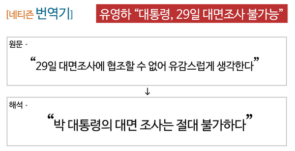 ▶ 박 대통령은 대통령으로서 현 시국 수습을 해야 한다. 그러니 검찰 조사는 서면조사로 대체하겠다. (k*ji****)