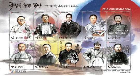 올해는 ‘독립을 향한 열망’을 주제로 독립운동가에 대한 관심 촉구와 올바른 역사인식을 확립하고자 대한민국 독립운동가 10인을 선정해 크리스마스 씰을 구성했다.
