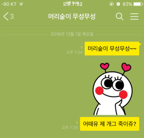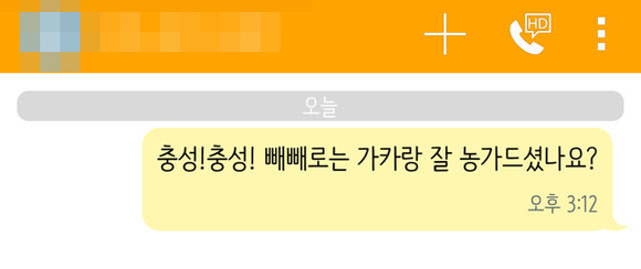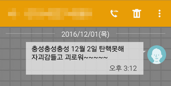 이정현 새누리당 대표는 “충성! 충성! 빼빼로는 가카랑(각하와) 잘 농가(나눠) 드셨나요?” “12월2일 탄핵 못 해 자괴감 들고 괴로워” 등의 문자를 받은 것으로 확인됐다.