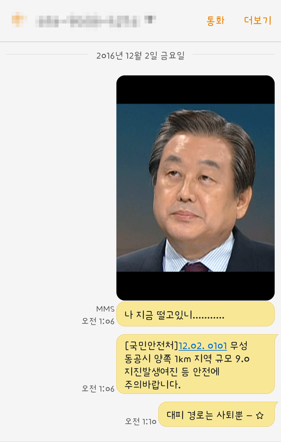 네티즌은 “우리 국민들 정말 용감하다” “풍자의 민족 아니랄까 봐 다들 센스있다” “사퇴 펀치에서 터졌다” “번호 유출한 사람 고소 당할까봐 걱정이다” “나도 문자 보냈다. 곧 경찰서에서 만납시다, 동지들” “보낸 사람들 실시간으로 생존신고 해주세요” 등의 반응을 보였다.