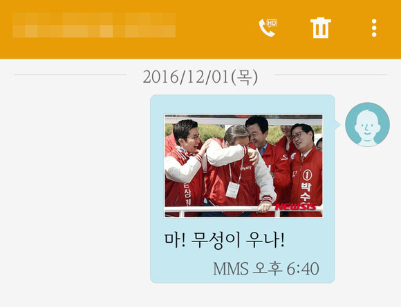 네티즌은 김무성 새누리당 전 대표에게 “머리숱이 무성무성. 어때요, 제 개그?” “머뭇거리지 말고 탄핵 찬성하시죠” “마! 무성이 우나!” “사퇴도 인생의 좋은 경험입니다” 등의 문자를 보냈다.