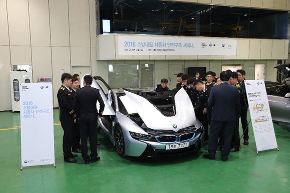 세미나는 이론 및 체험 프로그램으로 진행됐으며 친환경자동차 설명, 식별요령 및 안전구조 일반사항, 전기차 BMW i3와 플러그인하이브리드 모델 BMW i8 등 친환경자동차 특징 및 안전구조 요령에 대한 교육이 제공됐다.