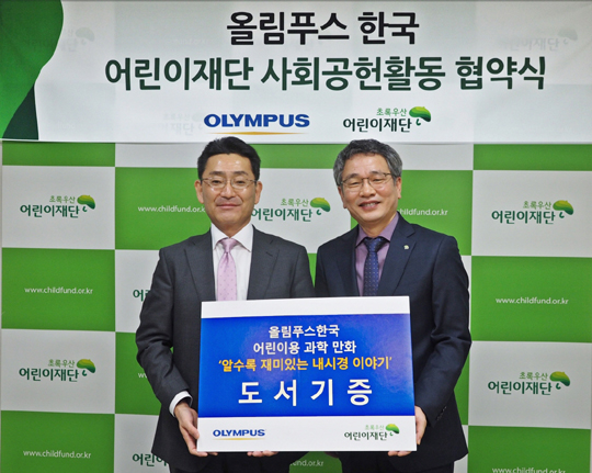 [쿠키뉴스=송병기 기자] 올림푸스한국(대표 오카다 나오키)은 지난 23일 초록우산 어린이재단(본부장 최철우) 서울남부지역본부에서 어린이재단과 어린이용 과학 만화 도서기부를 위한 업무협약을 체결했다고 밝혔다.이번 협약을 통해 올림푸스한국은 어린이용 내시경 과학 만화책 ‘알수록 재미있는 내시경 이야기’ 500권을 어린이재단에 기부한다.