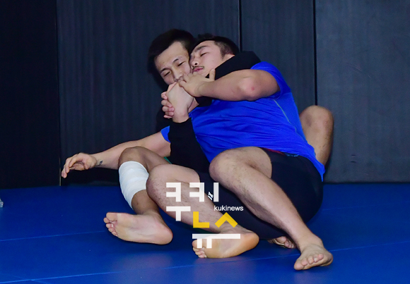 [쿠키뉴스=박태현 기자] 이종격투기 정찬성 선수가 4일 오후 서울 역삼로 코리안좀비 종합격투기 체육관에서 공개훈련을 하고 있다.