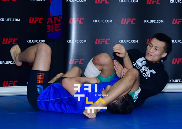 [쿠키뉴스=박태현 기자] 이종격투기 정찬성 선수가 4일 오후 서울 역삼로 코리안좀비 종합격투기 체육관에서 공개훈련을 하고 있다.