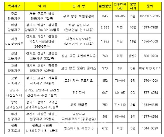 11일 부동산 리서치회사 닥터아파트에 따르면 올해 전국 공공택지에서 분양을 앞둔 단지는 모두 161개 단지·13만2194가구로 조사됐다.