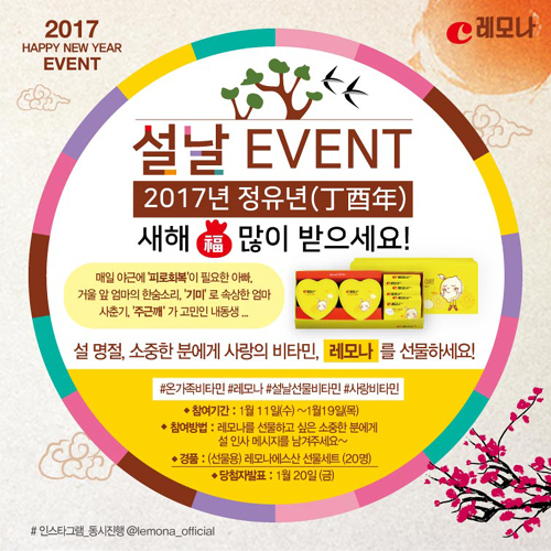 오는 19일까지 진행되는 이번 이벤트는 레모나 공식 채널인 ‘레모나 페이스북’과 ‘레모나 인스타그램