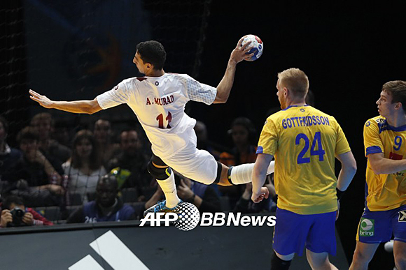 [쿠키뉴스=박태현 기자] 카타르 핸드볼국가대표 무라드 압둘라작이 19일(한국시간) 프랑스 루앙에서 열린 '2017 핸드볼월드챔피언십' 스웨덴과 D조 예선전에서 슛을 시도하고 있다. ⓒAFP BBNews=News1
