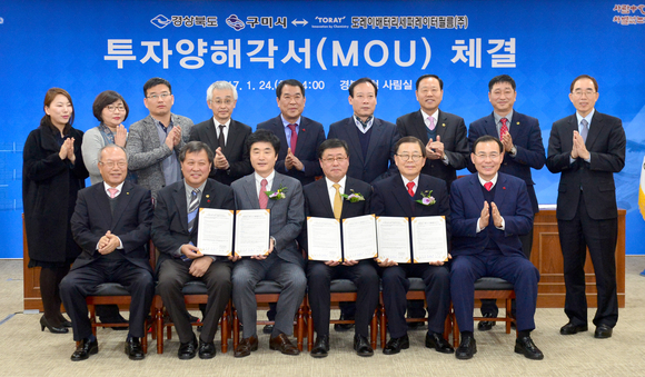경상북도와 구미시는 24일 경북도청 사림실에서 도레이배터리세프레이터필름㈜과 리튬이온이차전지 분리막 신규라인 증설 공장건립 투자양해각서(MOU)를 체결했다.