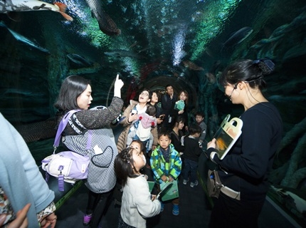 네 살배기 딸과 함께 투어에 참여한 한 아빠는 “아쿠아리움 연간회원권이 있어 종종 오는데 보는 것 중심의 관람일 수밖에 없었다”며 “전문해설사의 설명도 듣고, 책과 교규를 활용해 벨루가 암컷과 수컷의 울음소리를 들어보면서 관람하니 시청각을 고루 자극하는 교육이 된 것 같다”고 말했다.