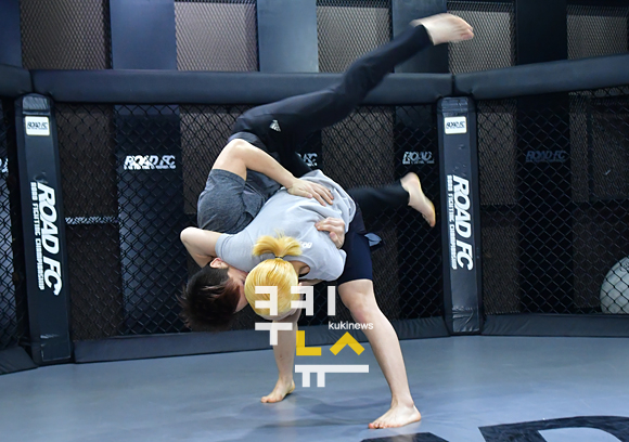 [쿠키뉴스=박태현 기자] 임소희 격투기 선수가 2일 오후 서울 압구정로 ROAD FC 오피셜 압구정짐에서 열린 'ROAD FC 037 XX' 미디어데이에 참석해 공개훈련을 하고 있다.