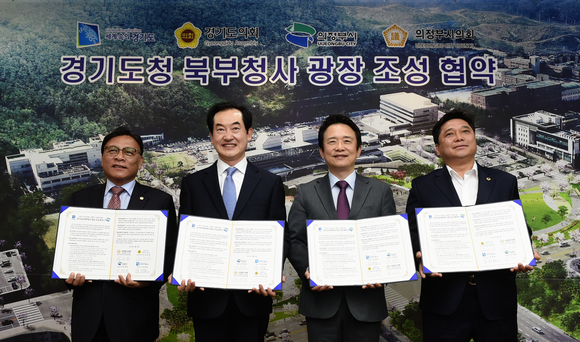 남경필 경기도지사와 안병용 의정부시장, 김호겸 경기도의회 부의장, 박종철 의정부시의회 의장은 1일 북부청사 도민접견실에서 ‘경기도청 북부청사 광장 조성사업 MOU’를 체결했다(사진).