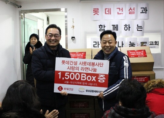롯데건설 샤롯데봉사단은 저소득층 가정을 대상으로 ‘사랑의 롯데라면’나눔 후원 행사를 진행했다고 20일 밝혔다.