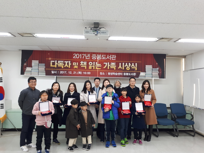 경기도 김포시 평생학습센터 중봉도서관은 ‘2017년 다독자 및 책 읽는 가족’을 선정, 인증패를 전달했다고 26일 밝혔다(사진).