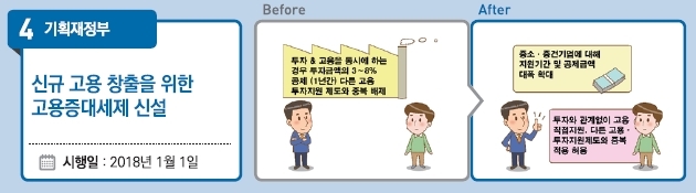= 투자가 없더라도 고용 증가인원 1인당 일정금액을 공제하는 고용증대세제가 신설된다. 다른 고용·투자지원제도와 중복 적용이 허용된다.