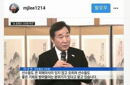 이민지는 비슷한 시기에 이낙연 국무총리가 “선수들도 큰 피해의식이 있지 않고, 오히려 좋은 기회로 받아들이는 분위기가 있다고 들었다”고 공개적으로 말한 방송 장면을 캡쳐해 올리기도 했다.