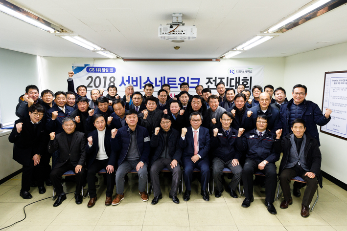 행사는 2017년 우수사업장 포상, 2017년 실적 및 고객만족도(CSI) 성과 리뷰, 2018년 서비스본부 사업계획 발표 등의 순서로 진행됐다. 특히 참석자들은 2018년 고객만족도 목표 달성을 위해 결의문을 낭독하고 목표 달성 보드에 서명하는 등 목표 달성에 대한 의지를 다졌다.