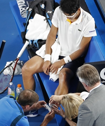 문제는 정현의 발바닥이었다. 정현은 이번 호주오픈에서 발바닥에 물집이 심하게 퍼졌다. 피멍도 심하게 들어 조코비치와의 16강전에선 진통제를 먹고 경기에 임했다. 한겨례 보도에 따르면 정현은 통증을 1~10 단위로 묻는 의사의 질문에 15라고 대답했다고 전해졌다. 정현이 안고 있는 통증의 깊이를 가늠할 수 있는 대목이다.